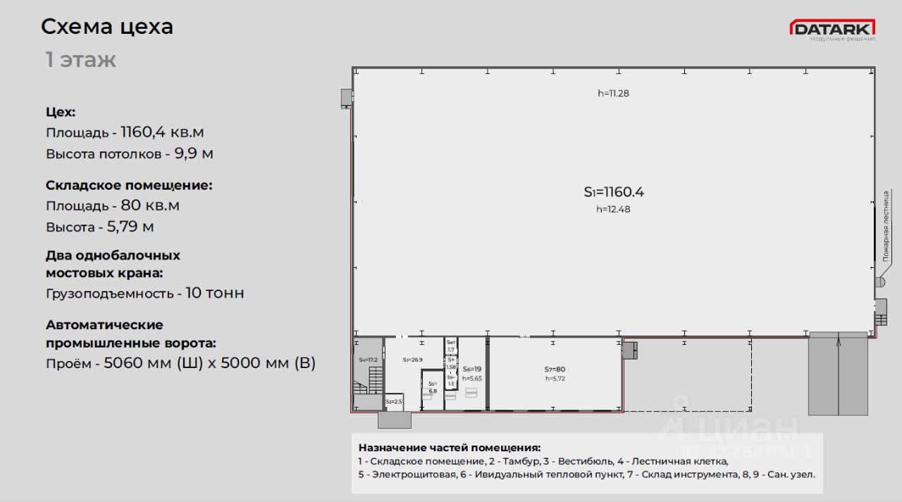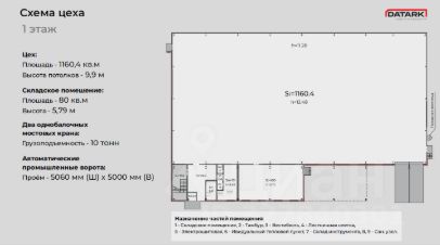 Производственно-складское здание, общая площадь здания 1 476 кв.м.