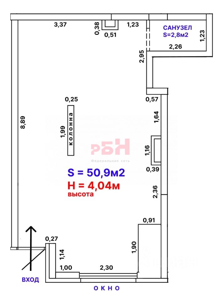 - высота потолков 4, 04 м;