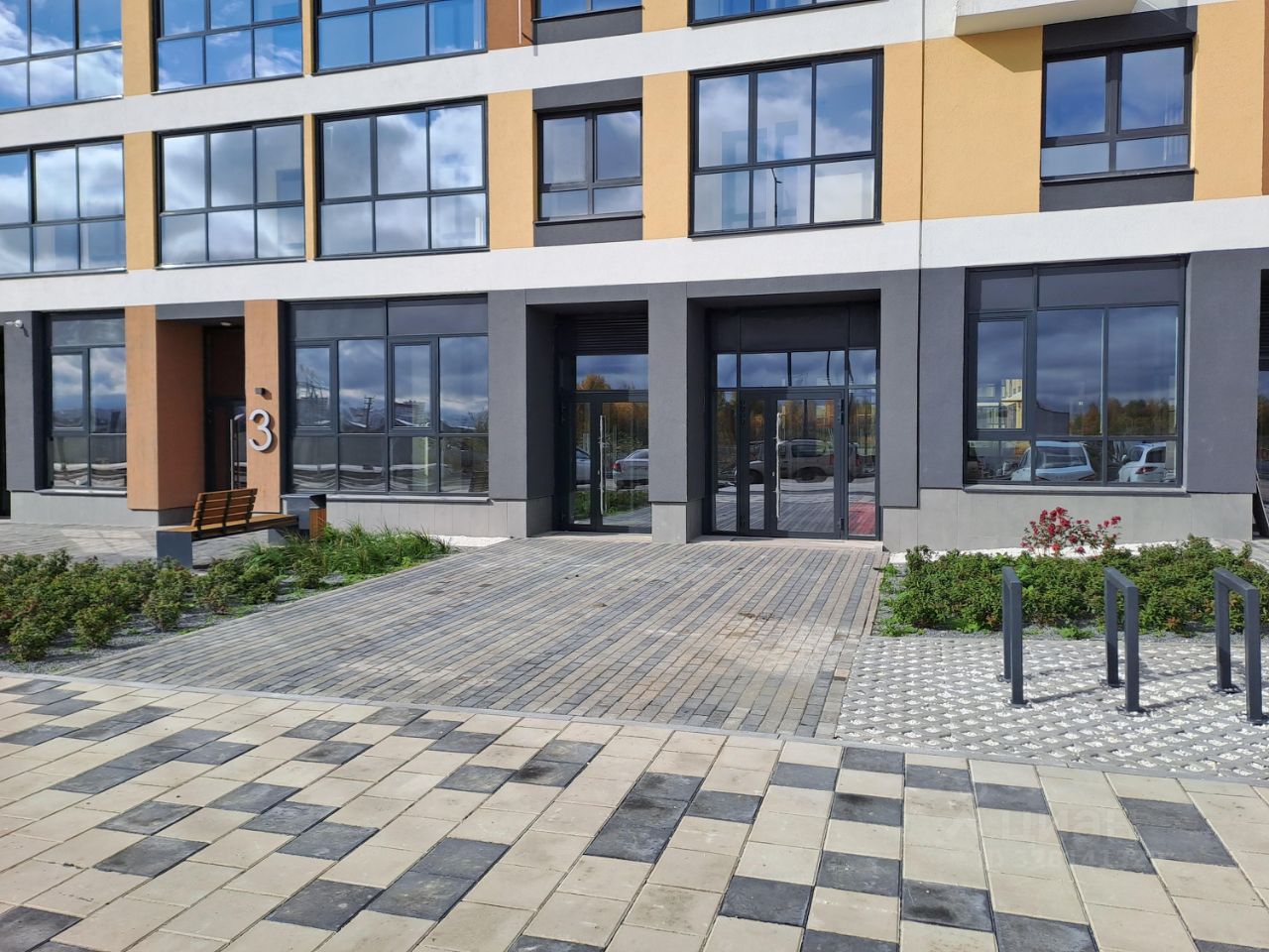 Витринное остекление; на фасаде есть место под вывеску. Бесплатная наземная парковка