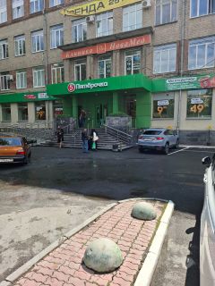1-й этаж - супермаркет Пятёрочка и медицинский центр; в цоколе - кафе; удобная транспортная развязка со стороны проспекта Ленина и ул. Малышева.