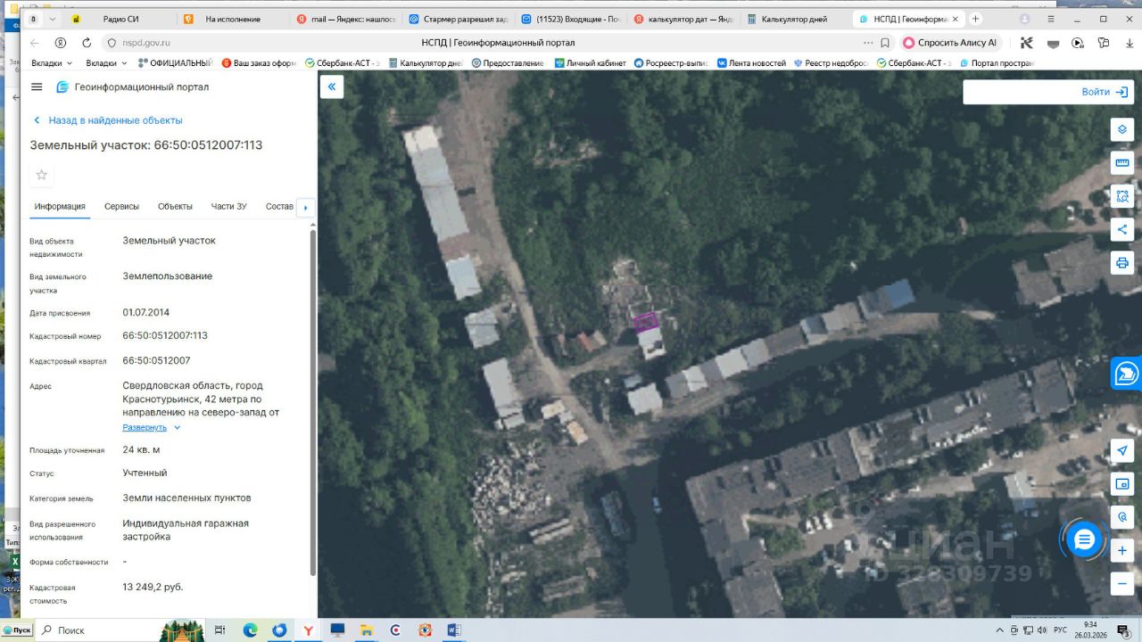 Предоставляется в аренду земельный участок под строительство индивидуального гаража площадью 24 кв.м, с кадастровым номером 66:50:0512007:113