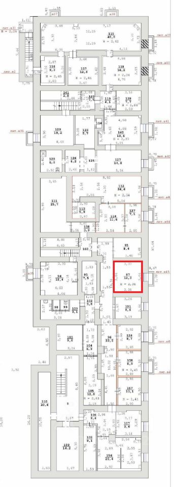 Подвал; без отдельного входа; элементы благоустройства (водоснабжение, водоотведение) в местах общего пользования помещ. 98-100.