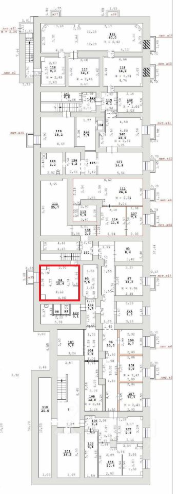 Подвал; без отдельного входа; элементы благоустройства (водоснабжение, водоотведение) в местах общего пользования помещ. 98-100.