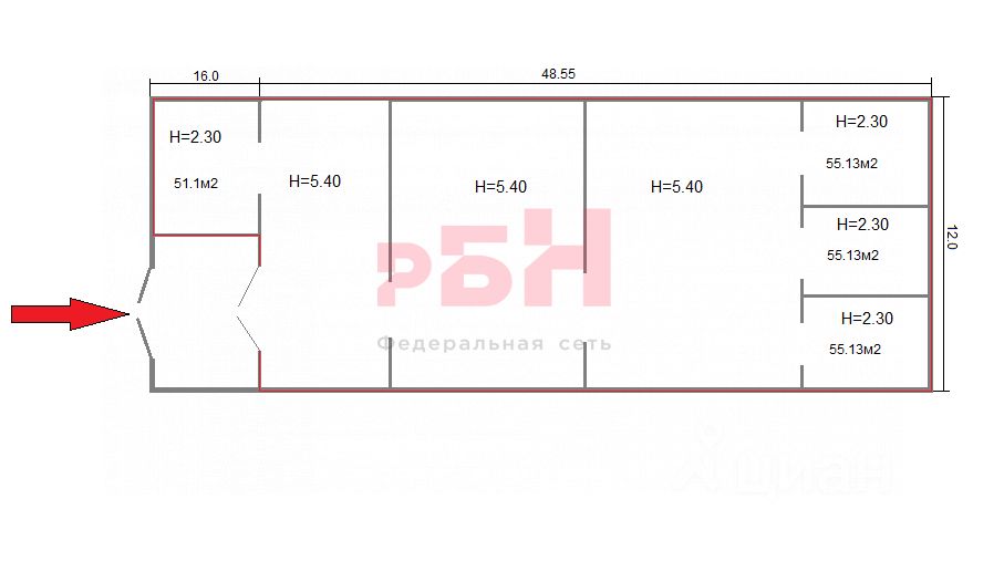 - высота потолка в основных цехах 5. 4м. , в холодильных камерах(4шт. ) высота потолков составляет 2. 3м. , при необходимости холодильные камеры можно демонтировать;