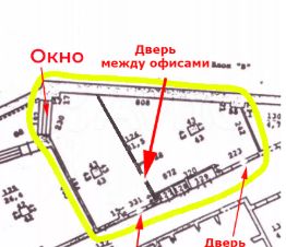 Помещение разделено на 2 кабинета по 20 кв м (одно помещение без окна):
