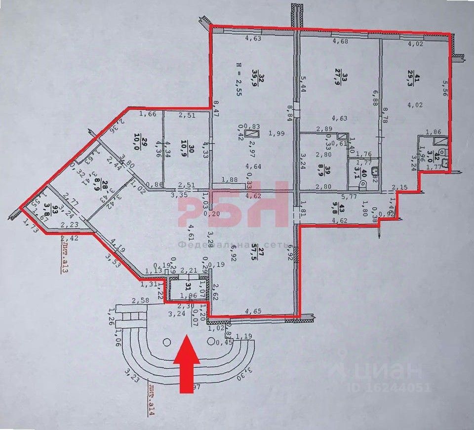 - высота потолков 2, 55 м;