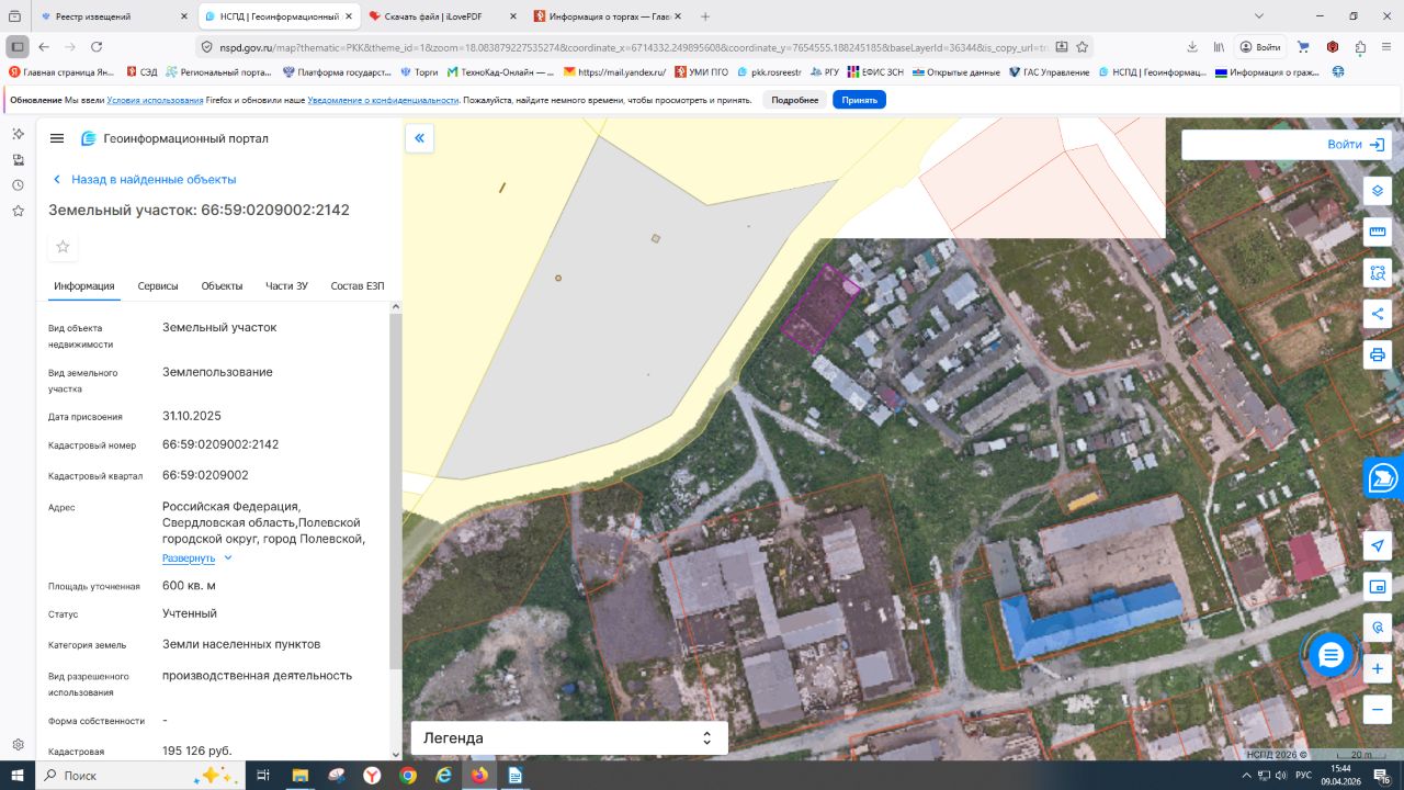 Земельный участок, расположенный по адресу: Российская Федерация, Свердловская область, Полевской городской округ, город Полевской, село Косой Брод, с кадастровым номером 66:59:0209002:2142, площадью 600 кв.м, категория земель земли населенных пунктов, с видом разрешенного использования производственная деятельность