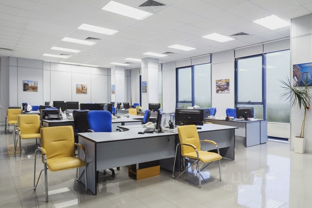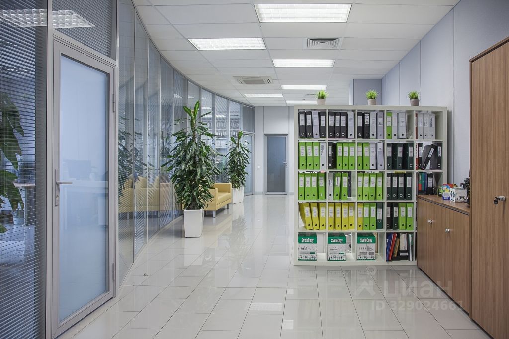 Ремонт: стены — панели с обоями Дюрафорт, пол керамогранит/ковролин, потолок Армстронг. 70% окон — панорамные в пол с видом на центральную часть бизнес-парка, все окна с проветриванием.