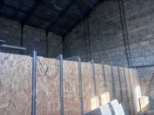 Высота до балки 5м. Ворота 5м. Две системы отопления. Первая - котёл (э/э. Дрова, пеллеты) с эл.тенами. Вторая - печь дровяная. 100кВт. Скважина.