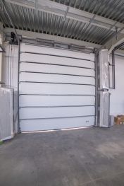 Ворота с тепловыми завесами на нулевой отметке для заезда фур.