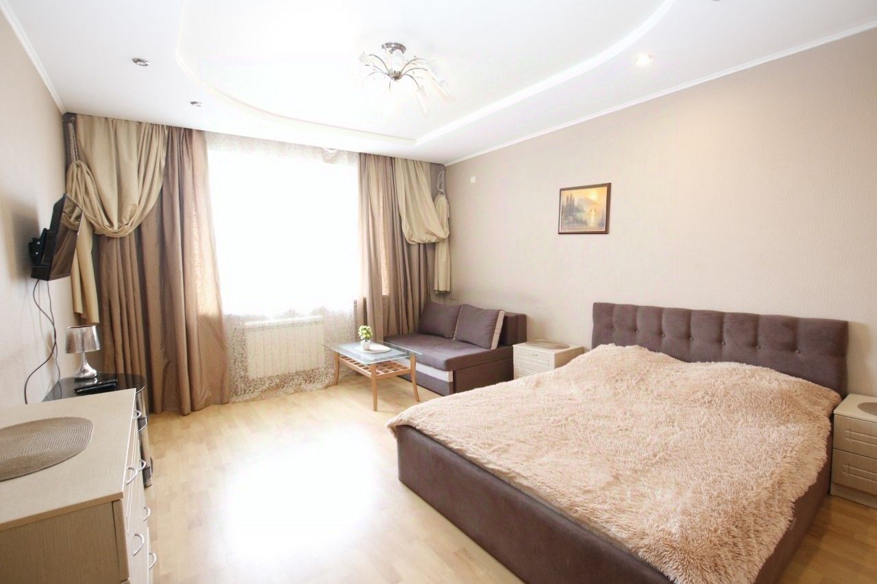 Уютная, чистая и большая однокомнатная квартира в новом доме. В квартире сделан качественный евроремонт: двухуровневые потолки, пластиковые окна, ламинат, разводка отопления по полу. Новый кирпичный дом, очень теплый, стены 60 см, не слышно соседей, своя котельная(всегда есть горячая вода) на территории и в подъезде видеонаблюдение. Утюг, фен, сушилка для белья. Высокоскоростной интернет WI-FI и Кабельное ТВ.