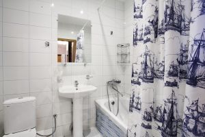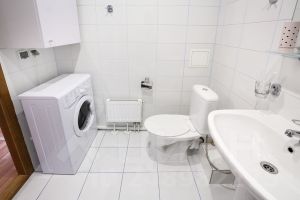 - Санузел оснащён современной сантехникой, стиральной машиной и феном