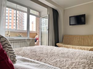 Наши апартаменты представляют собой квартиру с двумя изолированными комнатами, расположенную на четвертом этаже современного жилого дома в Чкаловском районе Екатеринбурга. Две спальни, кухня , прихожая, балкон и два санузла.