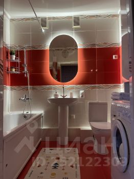 Ванная комната оборудована ванной, раковиной, унитазом, стиральной машиной.