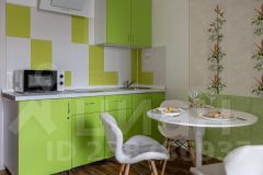 Кухня: плита, СВЧ печь, холодильник, чайник, фильтр для воды, набор посуды.