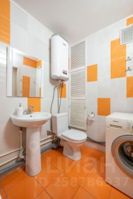 Ванная комната: ванная, стиральная машина, полотенца, утюг, гладильная доска, сушилка, фен, гель для душа, шампунь, мыло, зубная паста.