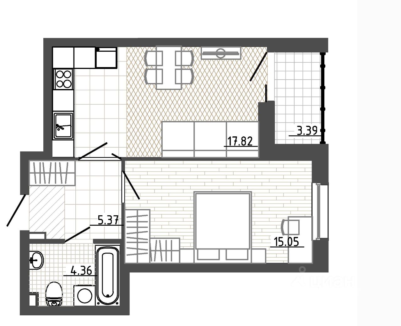 17,6 м²
