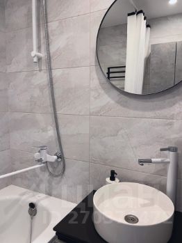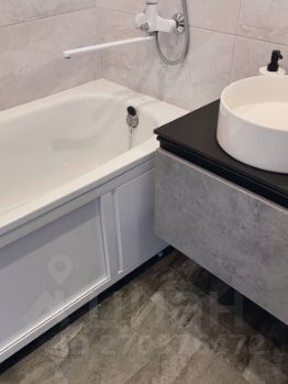 Меньше года назад в квартире сделан качественный ремонт. В ванной комнате и туалете новая сантехника, навесная тумба-раковина, отделка широкоформатной керамической плиткой под мрамор от пола до потолка. Установлена стальная ванна испанского производства, предусмотрены места для хранения бытовых мелочей. Также в вашем распоряжении стиральная машинка.