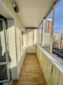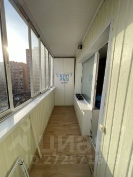 Лоджия: застеклена, утеплена, шкафы по бокам, свет, много места, вид во двор.