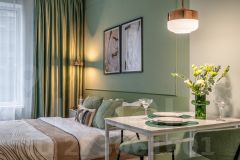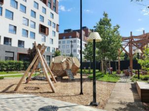 Окна выходят на тихий закрытый двор с ландшафтным дизайном и зонами отдыха.