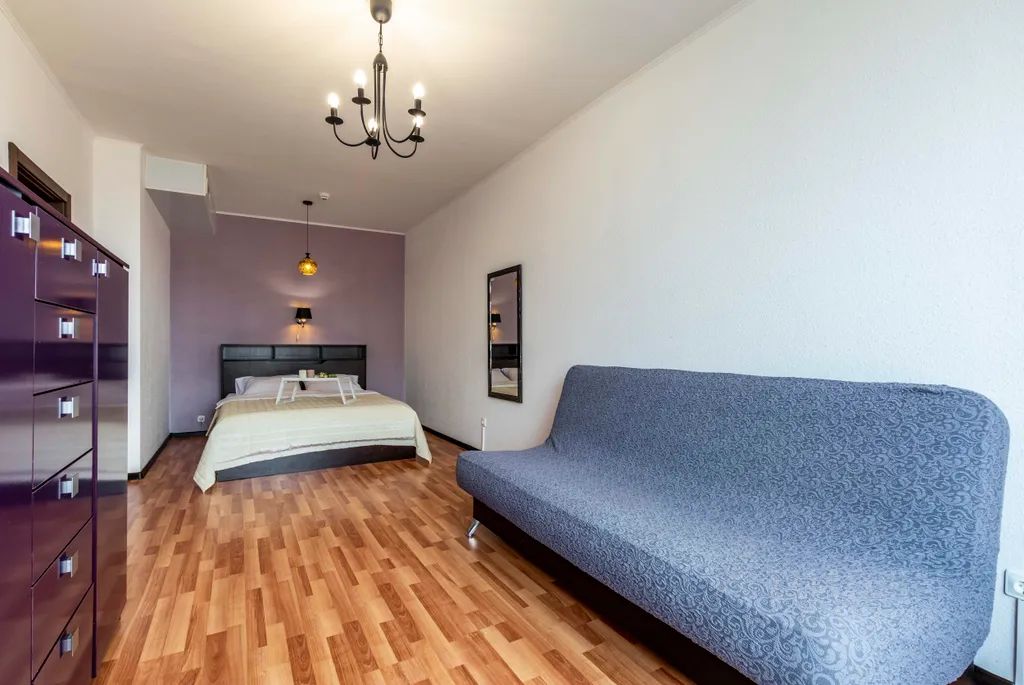 Компания beguest предлагает евродвушку посуточно в Екатеринбурге у метро "Геологическая" по адресу Белинского, 108 (16 мин до метро). Рассчитана на размещение до 6 гостей и оснащена одной двуспальной кроватью и двумя диванами.