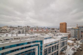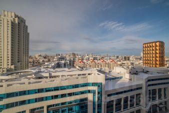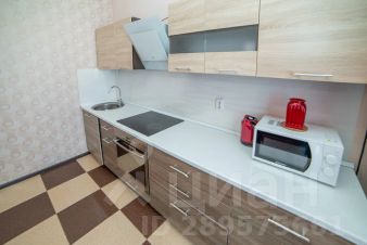 Апартаменты обставлен со вкусом новой современной мебелью в светлых тонах с яркими акцентами в кухонной и ванной зоне.