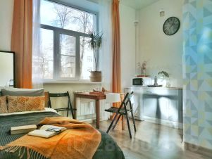 Потолки 3,2 метра высотой, большой объем, просторно даже при такой площади.