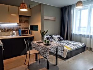 Уютная студия выполнена в эко стиле. Есть все для комфортного проживания до 4 гостей.