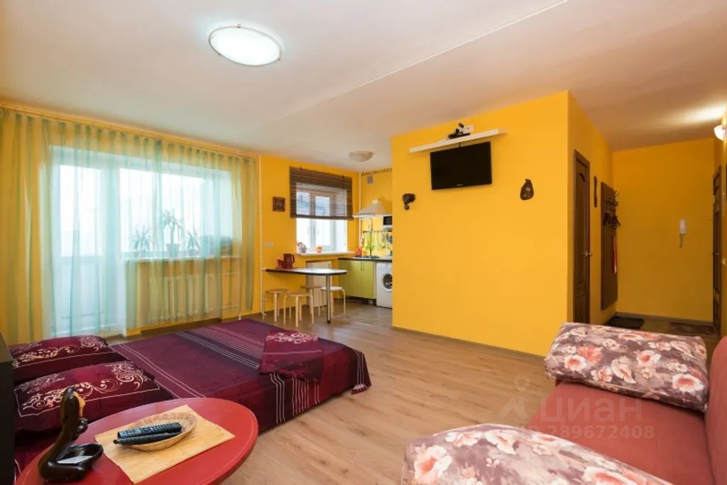 Однокомнатная квартира-студия с позитивным антуражем острова шри-ланка и современной техникой.