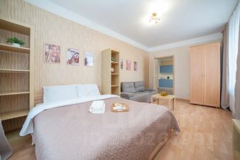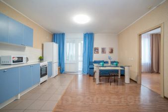 Апартаменты обставлен со вкусом новой современной мебелью в светлых тонах с яркими акцентами в кухонной и ванной зоне.