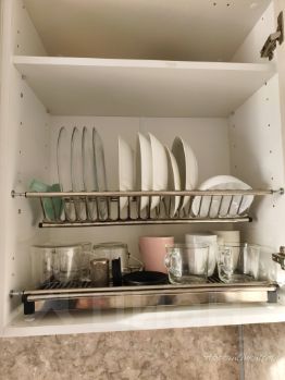 Кухня оснащена всей необходимой посудой и техникой для готовки в микроволновке, на плите или духовке.