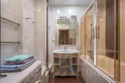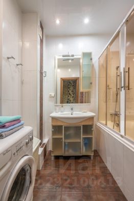 Ванная комната оборудована ванной, раковиной, унитазом, стиральной машиной.