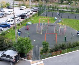 Двор закрытый, имеются 3 калитки и автоматические ворота. На территории двора есть детская и спортивная площадки, огороженный футбольно/баскетбольный корт, закрытая площадка для выгула собак, а также предусмотрена наземная парковка для жителей и гостей.