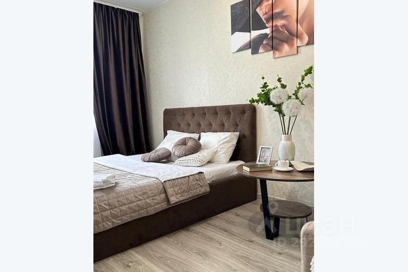 Кровать заправлена отличного качества постельным бельем. Чистота гарантирована!