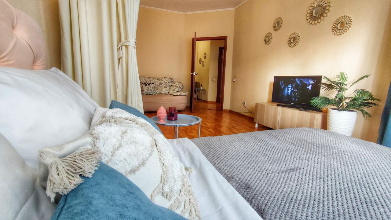 Квартира с панорамным ,красивым видом в Екатеринбурге. Просторная 58 м2, для проживания от 1 до 6 гостей. Сроки от 2 дней , нескольких месяцев до года. Без комиссии!!! Отдельная зона отдыха ( разделение комнаты шторы -ширма) В квартире есть все необходимое для комфортного проживания: -max 2+2 +2чел 2х спальная кровать с ортопедическим матрасом + удобный диван-кровать +мини диван -постельное белье -пушистые полотенца и косметика для душа -кухонный инвентарь для приготовления еды: посуда, приборы , кастрюли, сковорода, чайник,холодильник, плита. -специи, чай, сахар, соль, масло -бесплатный wi-fi, цифровое ТВ -стиральная машина , сушилка, гладильная доска, утюг, удлинитель, бытовая химия для стирки и уборки От метро Ботаническая и метро Чкаловская(Юж.автовокзал) не больше 15 минут пешком. 5 минут прогулочным шагом до остановки общественного транспорта (трамвай, автобус, маршрутное такси). 15 минут пешком до Парка Развлечений им.Маяковского где вы сможете насладится прогулками по лесным оборудованным прогулочным тропам, кататься на велосипеде, заниматься спортом,так же аттракционы для детей и взрослых, самую большую горку в области,кафе,детские площадки, новую лыжную базу) 10 минут на транспорте до Аквапарка "Лимпопо" и "Дельфинария", КРК "Уралец" - место проведений игр ХК Автомобилист. 15 минут на такси до самого сердца города - площадь 1905 года и Datsyuk Arena 15 минут на такси до МВЦ Екатеринбург-Экспо 20 минут до аэропорта Кольцово без пробок! по ЕКАД ТЦ Мегаполис, ТЦ Дирижабль, ТЦ Марс ( кинотеатр, кафе, рестораны, игровые детские, магазины, мастерские , аптеки и др) Проживание мини собачки возможно за дополнительную оплату с увеличенной суммой залога. -стоянка во дворе на улице
