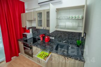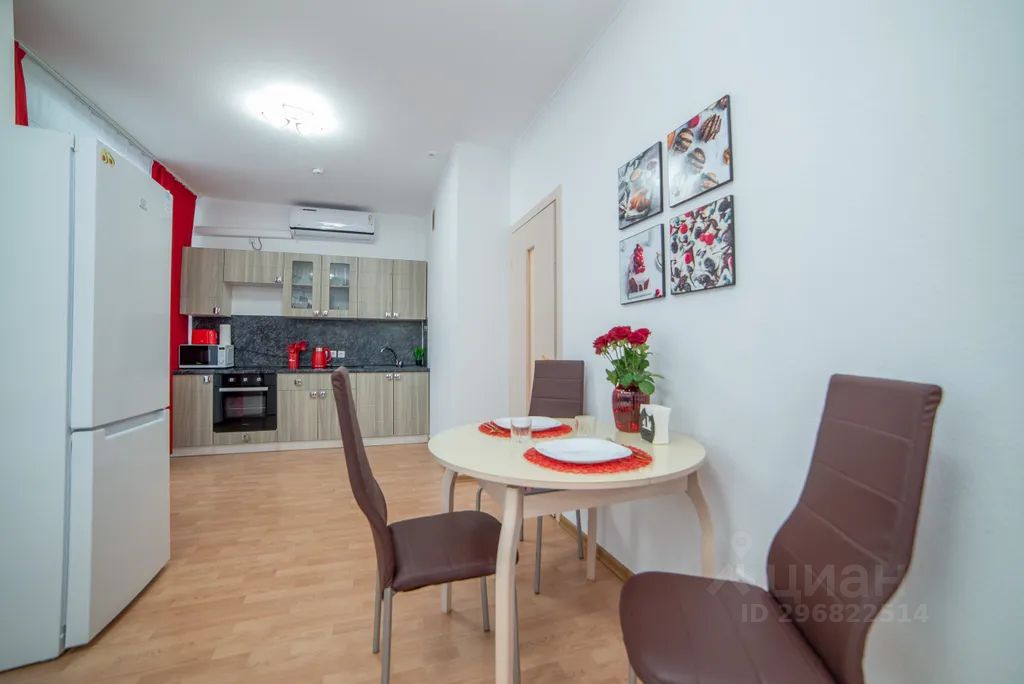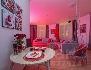 Апартаменты обставлен со вкусом новой современной мебелью в светлых тонах с яркими акцентами в кухонной и ванной зоне.