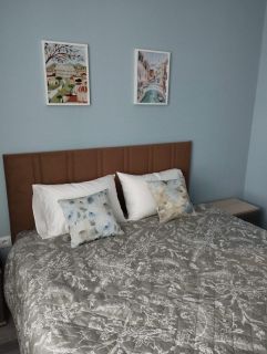 - двуспальная кровать с ортопедическим матрасом и прикроватными тумбами + шкаф в спальне,