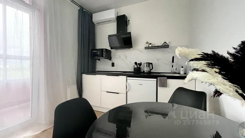 - Кухонный гарнитур со всем необходимым для приготовления: холодильник, эл. Чайник, встроенная варочная поверхность, микроволновая печь, посуда