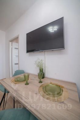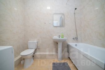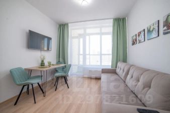 Апартаменты обставлен со вкусом новой современной мебелью в светлых тонах с яркими акцентами в кухонной и ванной зоне.