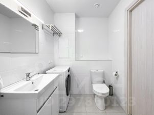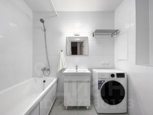 В ванной комнате установлена стиральная машина и вся необходимая сантехника.