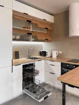 Кухня - вместительный гарнитур, холодильник, посудомоечная машина, духовой шкаф, варочная поверхность, микроволновка, чайник, система фильтрации воды. Большое количество систем хранения и антресолей. Имеется полноценный комплект столовых приборов и посуды.