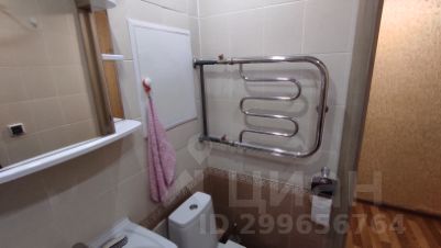 В сан узле выполнен приличный ремонт, есть навесной шкаф и скрытый шкафчик, полотенцесушитель от общего отопления.