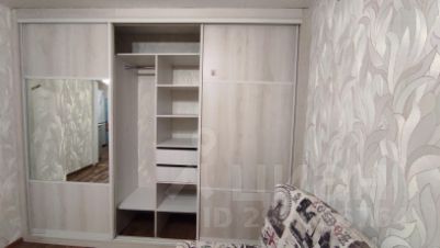 Из мебели в квартире есть кухонный гарнитур, диван в гостиной, в спальне письменный стол, шкаф и кровать. В гостиной новый встроенный шкаф купе с системой хранения.