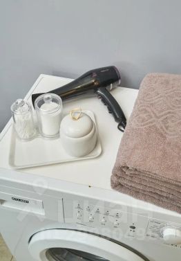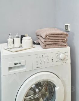 — в ванной комнате средства для принятия душа, мягкие полотенца, стиральная машина