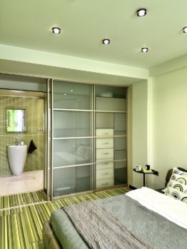 Удачная планировка: просторная гостиная, совмещённая с кухней, мастер-спальня, два санузла, отдельная гардеробная комната, балкон.