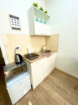 В студии есть все необходимое для проживания. Чистое постельное бельё, полотенца, средства гигиены
