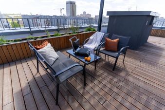 Общая площадь квартиры - 110 кв.м: 65 кв.м - жилое помещение и терраса размером 45 кв.м.