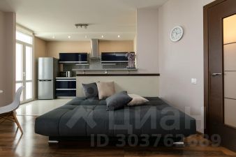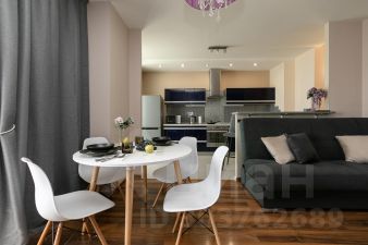Качественный ремонт, уютная спальная комната с большим шкафом-купе, большой двуспальной кроватью, кондиционером и телевизором. Гостиная зона совмещена с кухней. На кухне вся необходимая техника, посуда и набор столовых приборов, плита с духовым шкафом и вытяжкой. Теплая открытая лоджия, выход на лоджию возможен как с гостиной, так и со спальни. Еще один закрытый балкон - на кухне. Посудомоечная машина