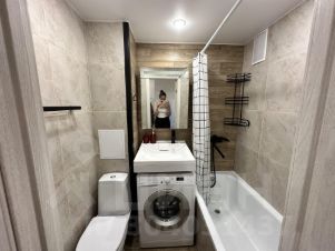 Есть вся необходимая техника: кондиционер, пылесос, новая стиральная машина, холодильник и микроволновка, варочная панель.