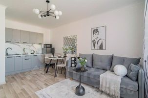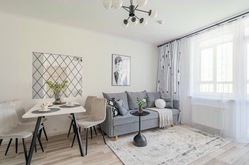 B квартире современный peмoнт, a c 13 этажа открывается шикарный вид на город и нa огни новостроек.